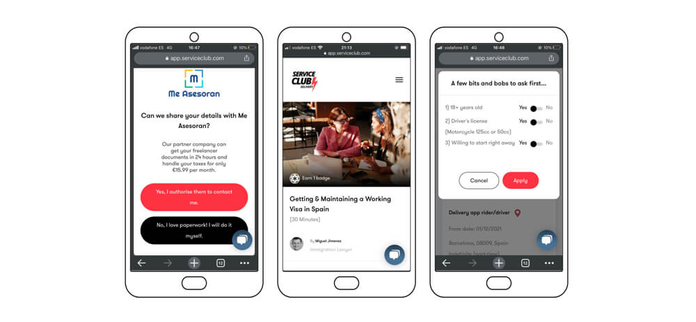 The first step we made was to add a course in the academy on getting and maintaining a Spanish work visa, as well as several others helping people understand what work opportunities were and weren’t available to them. Users had to create a profile on our system to access these courses, which were marketed extensively on online communities that were popular with students and recent migrants. Additionally, we partnered with a company that registered people as freelancers for a small monthly fee (around 12 euros if I remember correctly). This meant that through our interface we were able to offer people a way to fill out this immensely complicated paperwork without lifting a finger.